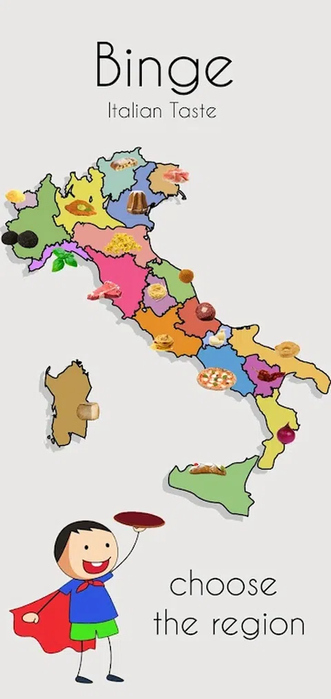 Binge 游戏如何运作? 每个意大利地区都有一个背景和一首典型的当地歌曲。 Binge 游戏的目标是根据音乐节拍捕捉每个地区的典型产品