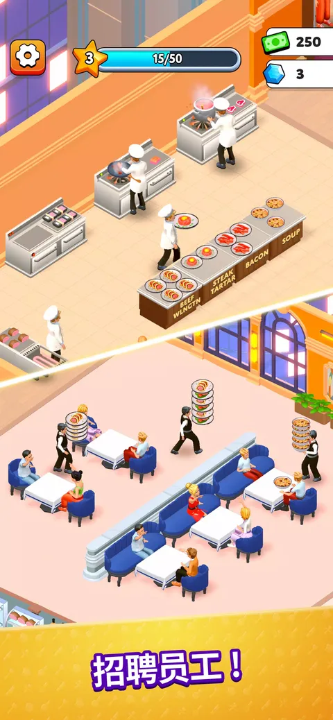 准备好踏上美味之旅了吗? 欢迎您开始建立您的餐厅帝国,并通过移动街机闲置游戏《Suzy’s Restaurant》探索食物准备的神奇世界! 在 Suzy’s Restaurant 中,您将管理自己的餐厅,为来自世界各地的顾客提供美味佳肴。苏西是一位经验丰富、充满热情的厨师,她将指导您成为梦想厨师。您将与她一起使用各种食材创建独特的食谱,以准备最美味的菜肴并满足您的顾客。 随着游戏的进行,您需要做出战略决策,克服您在各个级别中面临的挑战,以扩展并使您的餐厅更大。雇用新的厨师和服务员,扩展您的菜单,将您的餐厅打造成全球品牌。 在 Suzy’s Restaurant 中打造您梦想中的餐厅,打造全球餐厅帝国。 立即开始游戏,书写您自己的成功故事