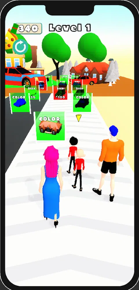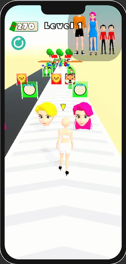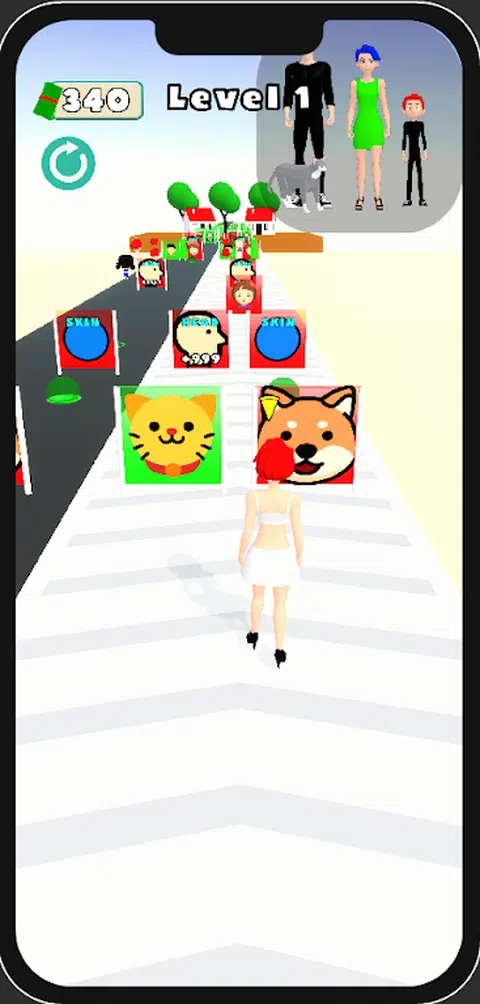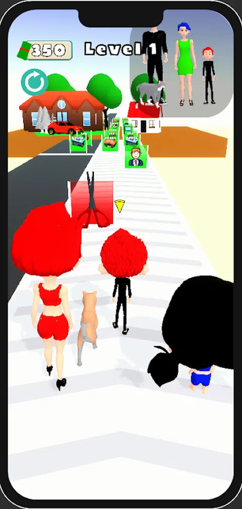 终极超休闲跑酷游戏,每一个决定都将决定你家人的命运!.你能在惊心动魄的障碍中创造完美的家庭形象吗? 游戏玩法: 作为一名奔跑的玩家,你必须做出决定,为家人更换衣服,并在每个关卡结束时获得房子