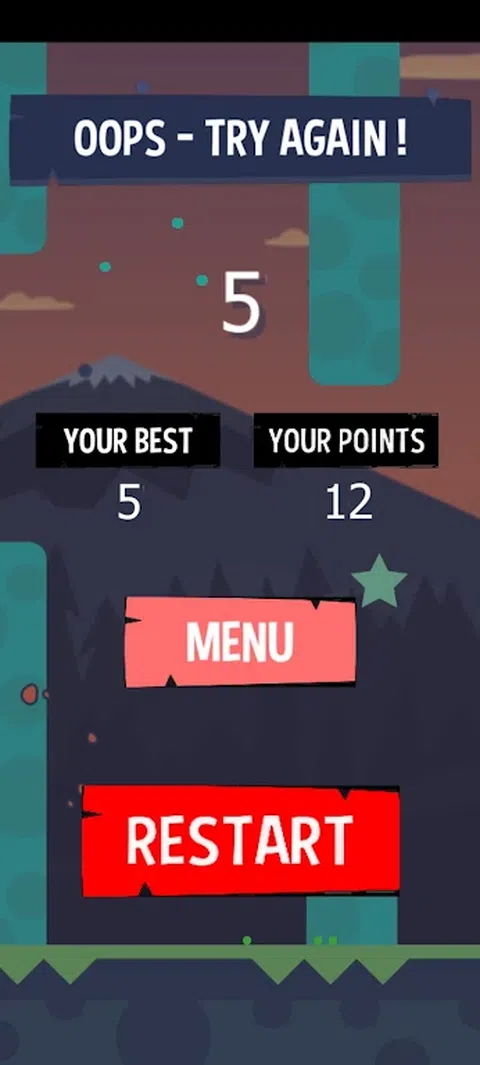 在此游戏中,您点击并释放屏幕,即可在越过障碍物时上下移动飞机,每越过一个障碍物即可获得 1 分
