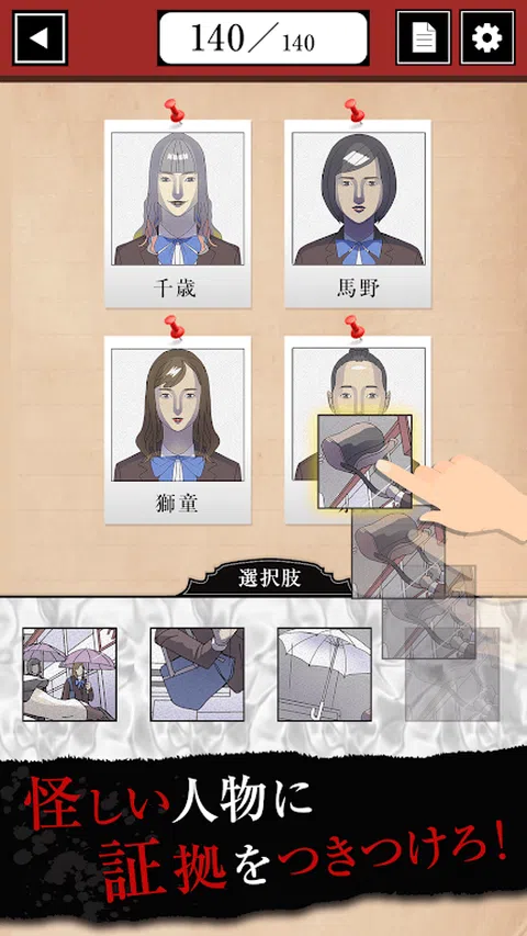 = 什么是谋杀手册 = 《谋杀手册》是一款解谜推理游戏,可让您在智能手机上进行全面的案件调查。 操作很简单,只需沿着问题内容点击插图即可。 一旦收集到证据,罪犯就会被逮捕。 将证据指向罪魁祸首,力争破案! = 关于解谜 = 我们将指导您解决应用程序中出现的一些解谜推理问题。 导演责任心强 纠结的关系 设计的陷阱 无意识的表白 谁是强盗 敬爱的经理 因为天才 严明纪律委员会主席 切的那一刻 被谋杀的麦当娜 看着我 两个瓜双胞胎 结婚纪念日悲剧 丢失的钻石 被盗的旧书 夏日夜晚的枪声 被盗的蓝图 我想忘记的过去 快递服务和歇斯底里的房东 下一任一家之主 中毒的女学生 赌徒的结局 午夜绑架 坠落身亡 谁偷了它 替换的字母 戴着面具的强盗 被盗的杰作 体弱多病的独生女 保安人员遭到袭击 大胆犯罪 抢劫袭击 大男人和三个侄女 天才被杀 百物语之谜 年龄差距夫妇和勒索者 被谋杀的律师 上吊的亿万富翁 充满气体的封闭房间 情侣互相擦肩而过 全部都可以免费玩。 许多疑难案件都由你来解决! = 游戏的操作方法 = 1)首先,检查问题的内容。 2)点击插图收集线索。 3)将收集到的线索指向刑事抓捕画面上的罪犯。 4)如果您回答正确,您将进入下一阶段。 = 提示和答案 = 如果您仍然找不到解决方案,我们为您提供了一些提示和答案。 答案将会完全剧透,所以请做好相应的计划。