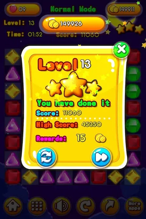 宝石流传奇是一款流益智游戏,您可以看到宝石在棋盘中旋转。 当你它们时,它们会粉碎。 特点, *5个型号; *支持地图; *在无尽模式中,你能走多远? *各种珠宝; *自动下落的巫师会给你一个很大的惊喜; *酷粒子; *酷炫的声音; *分享吧