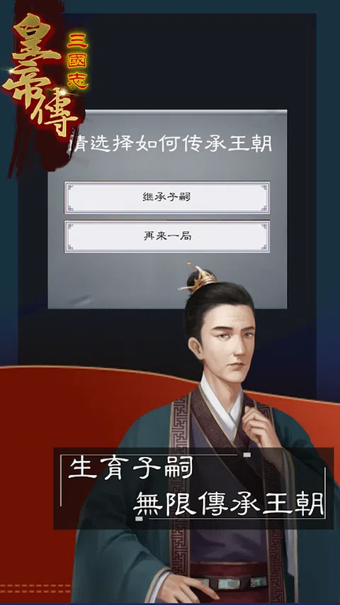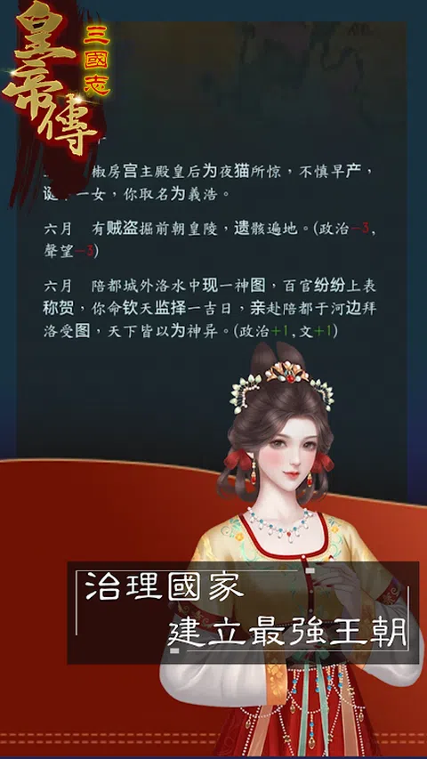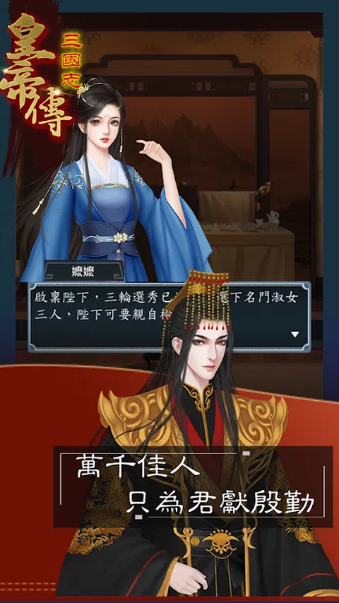 来到三国志皇帝传,你才是天命所归的帝王!以群雄并起的纷繁乱世为背景,在宏大的版图里,运筹帷幄纵横捭阖,自立为皇,让世界臣服与你,开创王朝称帝的新纪元! 【产品介绍】 开局三国已成,发展资源全靠抢,后宫佳丽有三千,让名将俯首称臣,口呼万岁,还可以生儿育女,把光复王朝(或者取而代之)的志向,代代相传,经典王朝,另类演义,这个游戏给你完全不一样的王朝体验! 游戏特色 【独创三国开局皇朝霸业】 开局三国已成,建国、攻城、版图吞并,救万民与水火,在汉末乱世沉浸式体验帝王人生。 【处理朝政运筹帷幄】 处理朝政,累计民心,招兵买马,扩张势力—是勤政爱民还是昏庸无道?是吞并天下还是还政汉室?乾坤独断,皆由你一言而决。 【后宫佳丽美人相伴】 权倾天下怎能没有美人相伴?是萝莉?御姐?温柔?泼辣?三国乱世,百位奇女子等你宠幸,各种各样的古典美人,伴君左右