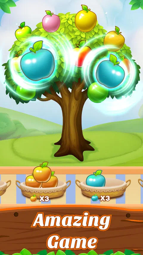 《苹果树》是一款充满乐趣和挑战的手机游戏。在游戏中,你将有一棵硕果累累的苹果树,树上结满了五颜六色的苹果,红的、黄的、紫的…你需要点击颜色相同的苹果,将它们收集到篮子里。每次收集三个相同颜色的苹果即可消除积分,感受收获的喜悦