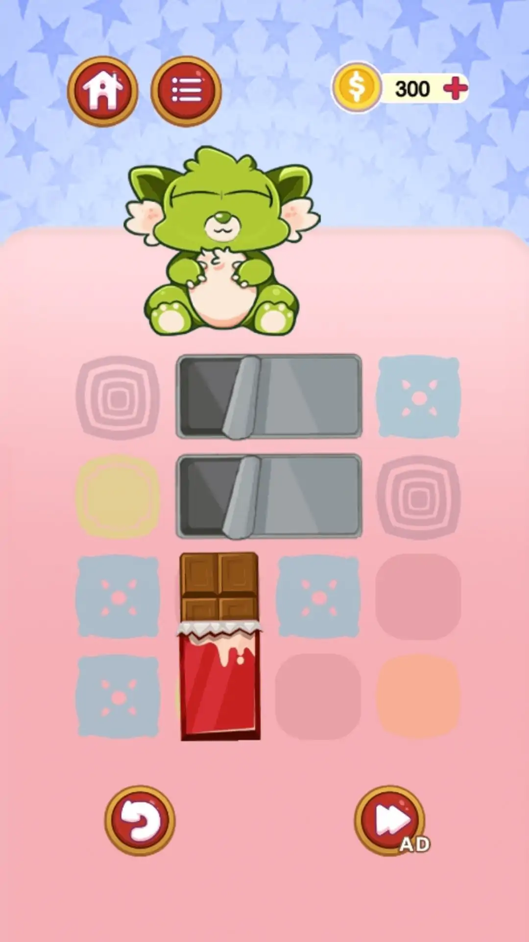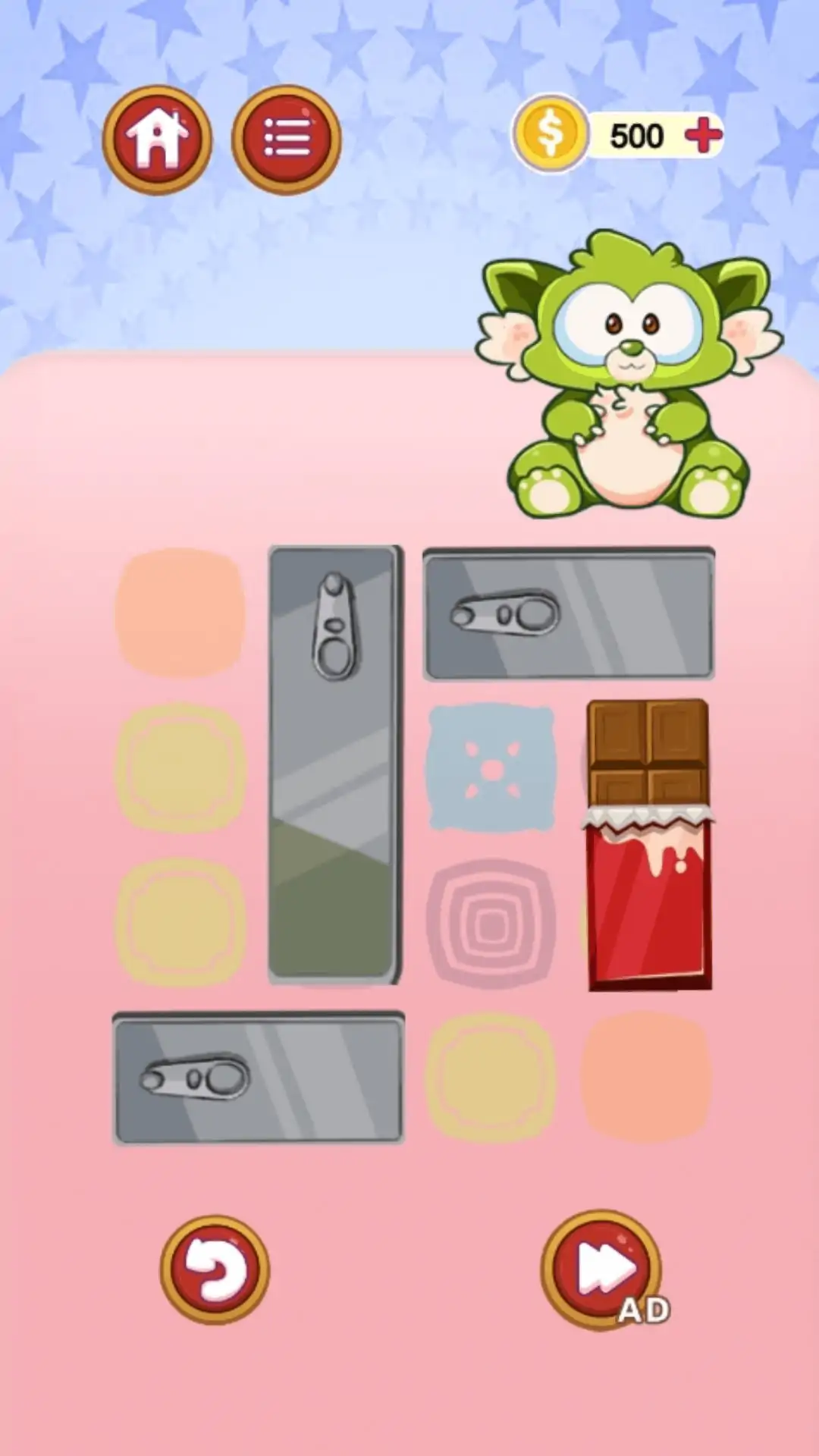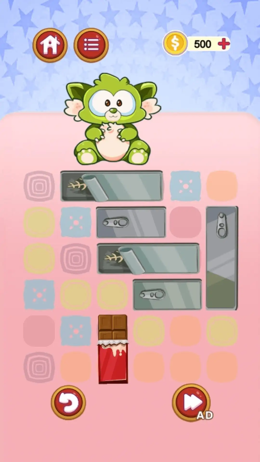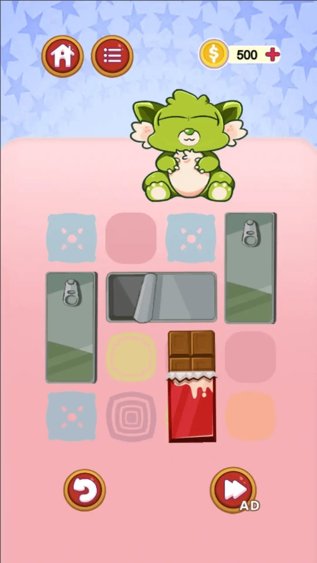 一款休闲小游戏,妈妈终于给小怪兽买她最爱吃的巧克力了,但是桌子上的杂物太多了,巧克力没有办法送进小怪兽的嘴里,你能帮助小怪兽吃到巧克力吗?游戏的玩法类似于华容道,挪动桌子上的杂物,让巧克力顺利送入小怪兽的嘴里。我们准备了海量的谜题,难度也是循序渐进,玩家需要充分运用逻辑思维能力才能顺利过关。赶快让可爱的小怪兽展现笑容吧!