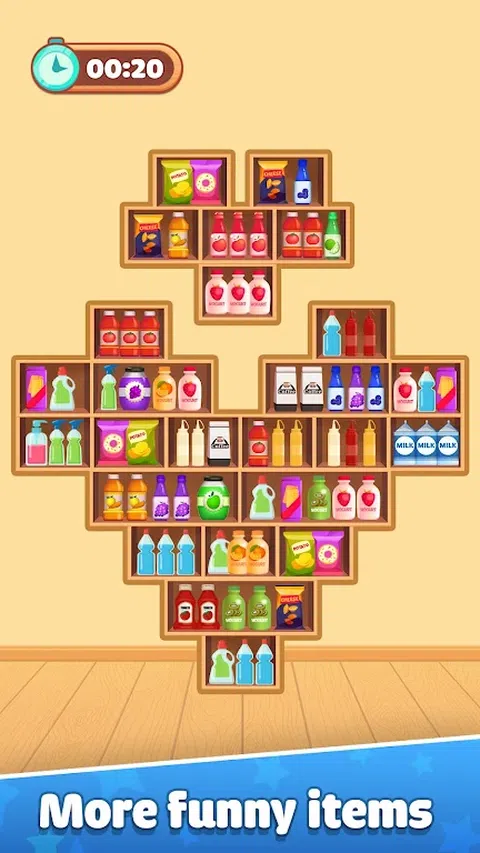 商品三重排序游戏:排序拼图是一款简单但有趣且引人入胜的益智游戏,其中商品将被排列成三个相同商品的链。游戏的每个关卡都呈现多样化的化学板,从食物到家居用品,您需要快速找到方法将它们排列成三重匹配链。 进入激动人心的商品分类世界,享受对一系列丰富多彩的物品进行分类的令人满意的体验 游戏特色: - 匹配三件物品:发现组合三个相同物品以清除棋盘并赢得积分的独特乐趣。 - 排序谜题:通过我们创新的排序谜题机制调动您的大脑,其中战略性移动将获得令人满意的完成奖励。 - 三重匹配:每个级别都会遇到新的组合和商品收集,挑战组合三合会的能力。掌握三人匹配的艺术,成为顶级分类者并解锁新关卡。 - 数百个级别排序:数百个级别永远不会失去乐趣,每个级别都提供新的货物放置挑战以供征服。 这款游戏集乐趣和挑战于一身,让玩家每次尝试获得高分并通过关卡时都感到兴奋不已。在商品匹配游戏中探索并征服独特的关卡