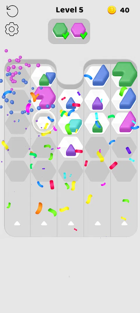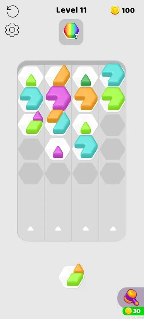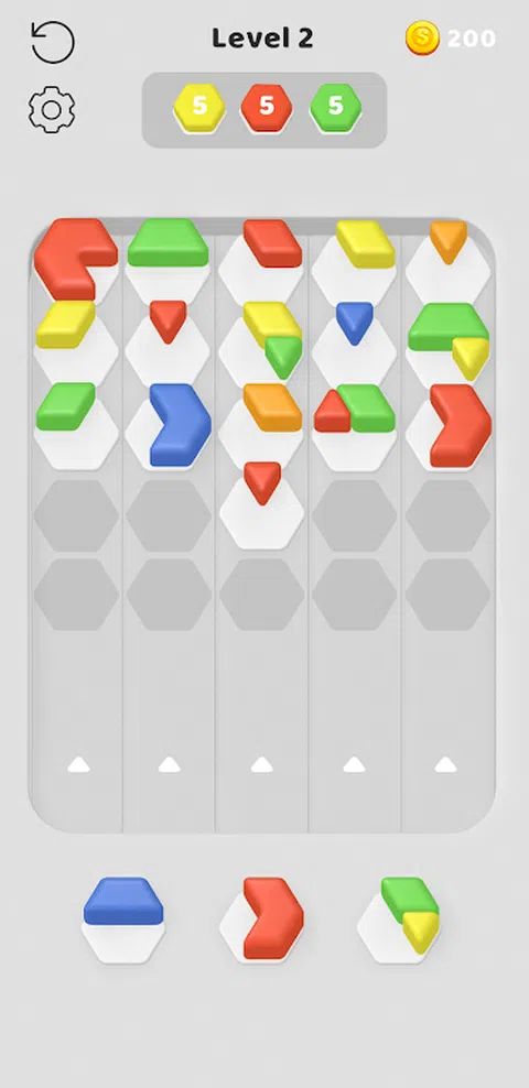 规则: - 从 3 个六角形中选择一个 - 射击前方的六角形 - 对六角形进行排序 - 在关卡中收集所需数量的六角形 - 清除所有关卡 - 享受