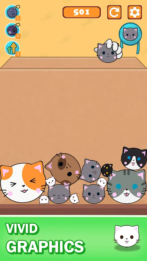 潜入“Suikats”的迷人世界,这是一款令人上瘾的 Suika 游戏类型手机游戏,您的目标是将猫合并到一个盒子中而不溢出它。在这场智力挑战中,你需要发挥你的聪明才智,策略性地放置猫,创造组合,同时避免溢出。为了帮助您,我们提供特殊奖金来帮助您摆脱棘手的情况。准备好享受数小时的猫科动物乐趣吧,踏上这场猫咪融合冒险之旅