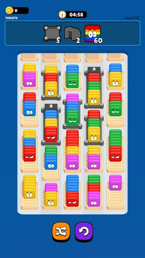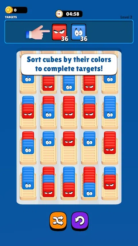 愤怒的立方体:将它们全部分类!结合了最佳的分类和匹配 3 游戏玩法,提供充满多彩立方体和刺激的有趣和具有挑战性的关卡! ? 丰富多彩的分类乐趣 当您对彩色立方体进行排序以完成每个级别时,享受视觉上令人惊叹(和愚蠢)的体验。点击或拖放来移动立方体,这完全取决于您的游戏风格! ? 具有挑战性的关卡 通过既有趣又具有挑战性的关卡来测试您的解谜技巧!按颜色对立方体进行排序并完成目标以取得进展! ? 各种障碍 穿越各种障碍物,包括钉子容器、草地、蛋篮、未知立方体和刷怪笼!每个关卡都会带来新的挑战,让您时刻保持警惕! 滴答! 与时间赛跑,在时间用完之前对立方体进行排序并实现您的目标!仔细计划您的移动以通过关卡! 怎么玩: ? 点击或拖放 使用简单的点击或拖放控件按颜色对立方体进行排序。这完全取决于你的游戏风格! ? 克服障碍 处理独特的障碍物,如钉子容器、草、蛋篮、未知立方体和刷怪笼!保持专注,不要让挑战拖慢你的脚步! 管理你的时间 留意计时器,在时间用完之前继续分类以完成关卡!滴答,滴答! 准备好迎接丰富多彩的分类谜题,并下载“愤怒的立方体:全部分类!”现在