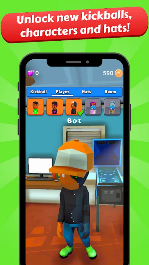 为您的房间解锁数十个新场地、游戏模式、踢球、角色皮肤、帽子和定制!帮助我们打造有史以来第一个也是最好的踢球手机游戏! 特点: -在大量的室内和室外踢球场上玩踢球或踢球迷你游戏 -数十个可解锁角色 - 为你的角色提供数十种定制物品 -解锁物品,使用电子游戏柜、奖杯、新架子等定制您的房间! -定期添加新功能和更多内容