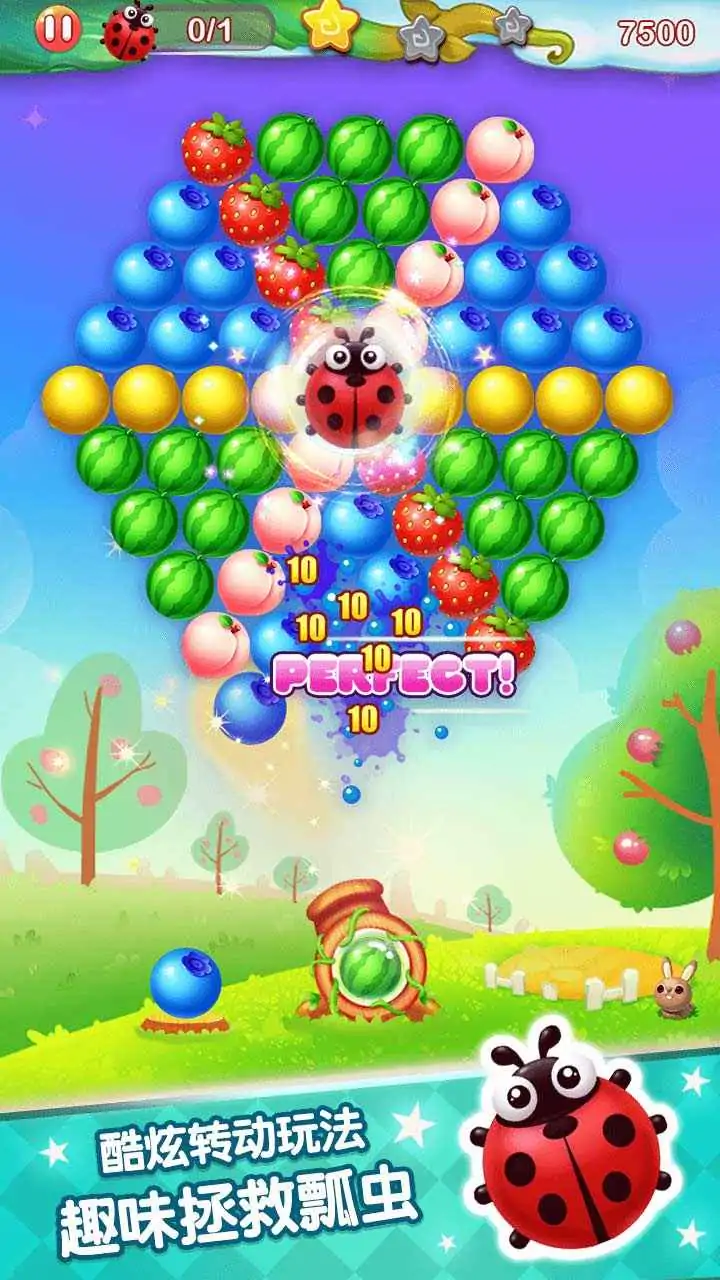 《水果泡泡传奇》是一款可爱的全新策略类休闲游戏。在缤纷多彩的水果泡泡群中,和小女巫猫安吉拉并肩作战,一起闯关。和她一起解救被困的小猫咪,一起捕捉水果上的七星瓢虫,一起收集星光。连击还会有意想不到的道具奖励,让你轻松完美通关,赶快加入我们吧! 让手指划出你的机智,来一场说走就走的水果泡泡之旅吧。