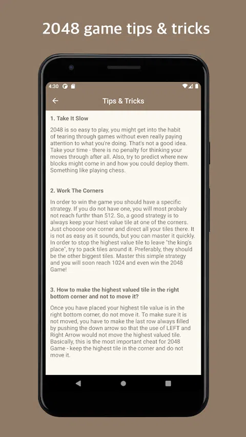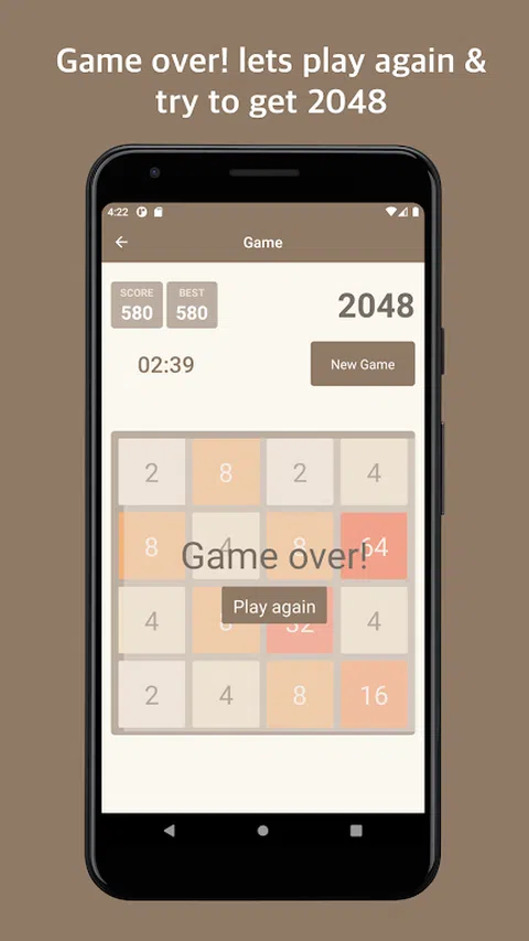 2048 益智游戏是一款引人入胜且高度上瘾的数字益智游戏,挑战您的战略思维和解决问题的技能。设置在时尚简约的网格上,每次向上、向下、向左或向右( )四个方向之一滑动图块,都会向该方向发送所有图块,直到它们击中网格或另一个图块的边缘。当两个相同数字的图块碰撞时,它们会合并成一个图块,其数字的组合值。 从 和 的适度图块开始,之后您的目标是逐步合并这些图块以创建越来越大的数字。最终目标是到达 2048 年,这是一项需要远见、计划和一点运气的任务。每次移动都会在网格上引入一个新的 或 图块,增加复杂性并将您的空间推理推向极限。 没有时间限制,因此您可以花时间尝试预测新方块可能出现的位置以及如何部署它们,这将有助于实现您的最终目标 2048 ? 。 凭借其优雅的设计和直观的游戏玩法,2048 Puzzle Game 提供了简单性和深度的无缝融合。简洁的游戏界面,精致的动画和令人满意的音效,增强了身临其境的体验
