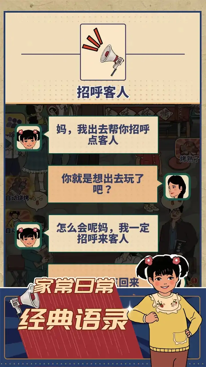 《时光烧烤摊》一款沉浸式体验8090年代风情的烧烤模拟经营游戏,在这款游戏中,您将被带入一个充满怀旧气息的烧烤世界,每一串烤肉都承载着童年的记忆与欢笑。 《时光烧烤摊》不仅完美复刻了那个年代的独特韵味,更将烧烤的每一个细节都刻画得淋漓尽致。从炭火的跳跃到食材的翻转,再到调料撒落的瞬间,都让您仿佛置身于真实的烧烤摊前,隔着屏幕也能感受到那股诱人的香气扑鼻而来。在这里,您不仅可以体验到烧烤的乐趣,还能重温那些已经逝去的童年时光。无论是与好友围坐畅谈,还是独自享受那份宁静与美好,《时光烧烤摊》都能满足您对烧烤与回忆的所有幻想。 快来加入《时光烧烤摊》,让我们一起在这个充满怀旧与温情的世界里,开启一场难忘的烧烤之旅吧!