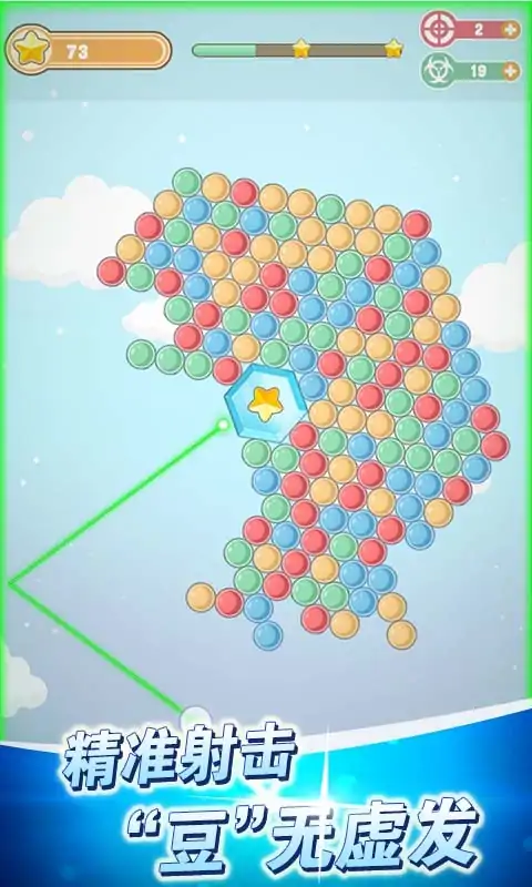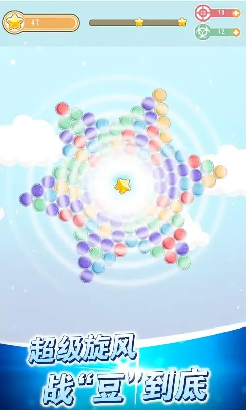 “什么!?不让我吃饭?可以...不让我睡觉??可以...不让我打豆豆???emmmm...不存在的!!” “欢乐打豆豆”继承了休闲消除游戏打豆豆的经典玩法,同时也加入了更有趣的游戏内容。一样的打豆豆,不一样的新体验,一起来挑战更多关卡吧! 【魔性到不能停】 •继承经典的玩法,组成三个及以上的同色豆豆立即消除。 •丰富有趣的关卡,上百个充满乐趣的关卡等你来挑战。 •流畅爽快的射击,只需要点击屏幕即可瞄准射击。 【挑战新高度】 •收集星星解锁更多关卡,消除越多星星越多。 •突破局限的无尽模式,测试你能坚持多久。 【勇敢去战“豆”】 •高效又实用的道具,指哪打哪不忽悠。 •每日礼品大转盘,快来抽取你的幸运道具。 •关卡满星奖励,道具拿到你手软。 【技巧很重要】 •反弹消除:利用反弹来消除上方的豆豆,下方的豆豆也随之掉落,提升效率。 •填充消除:在同色豆豆的旁边填一个,用于造一字型来为后续的消除打基础。 •补位消除:发射到两豆之间空着的缝隙中,将两边同色的豆豆一网打尽。 •使用道具:利用引导线获得发射轨迹可精准射击,利用超级旋转复活并去掉那些触碰到墙壁的豆豆。