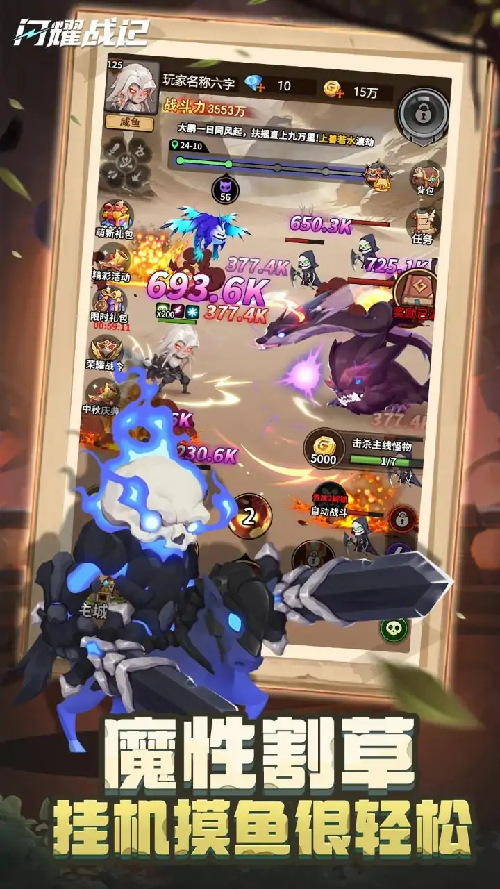 转生成为割草侠,靠砍砍砍成为首富 割割割,爽爽爽,暗黑魔性刷子就来《闪耀战记》!随机地形迷雾大冒险,四系异兽助战,技能真通天,割草就爆全套神装!真肉鸽,真刺激,轻烧脑,轻策略,超耐玩,很上头! 【削削削 自动收割】 Roguelike探险,打击感拉满的解压战斗!是宝藏也是陷阱,是迷雾也是惊喜,爆屏特效收首领,真人野外来合击,升的是血压,玩的是心跳! 【养养养 毒火冰雷】 绿魔绒毒,狱炎冥龙,雪怪邪神,霹雳电主,四系神兽任性养!进阶变异无损转换,攻守同行契约作战,命运羁绊齐割草,一战成名爆仓收益! 【欧欧欧 什么都爆】 说不氪就不氪,一键百次锻造,点金之手也要脑力加成!爆仓的装备库,满额的技能点,全亮的收集池,非酋来了都直呼毕业如此轻松逆袭欧皇! 【屠屠屠 跨服刷榜】 点亮千变万化的技能树,不靠数值比拼,神人各有各妙招!远征不在话下,闯关上天下地,新赛季新社交!可单机也可团战,组队跨服大作战! 【躺躺躺 佛系上头】 碎片快乐新选择,困了累了来一把,轻轻烧脑打一打,精神饱满随玩随停,睡后收入AI助手帮你收,福利该有全都有,醒来上线又是新的快乐! 重生之我在暗黑魔幻地牢里割草!这一次,是要风得风要雨得雨的对决,来写下属于你的《闪耀战记》!