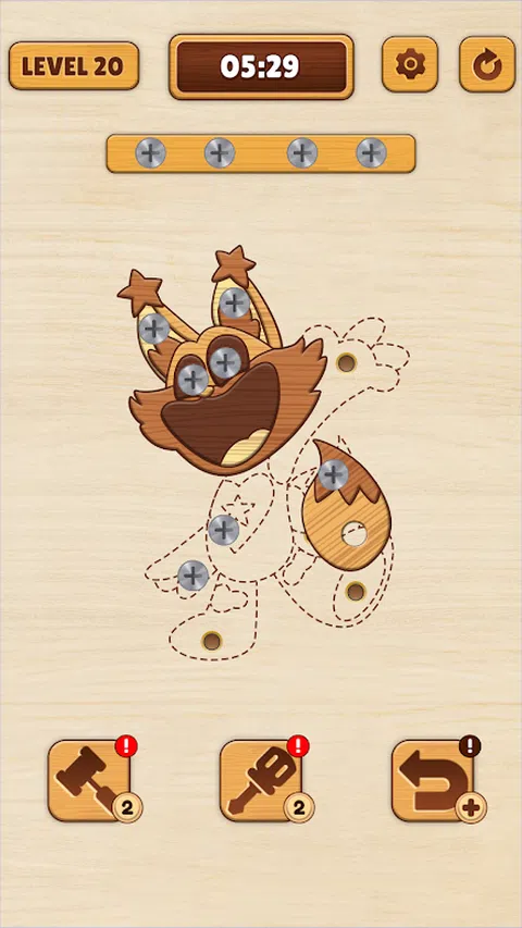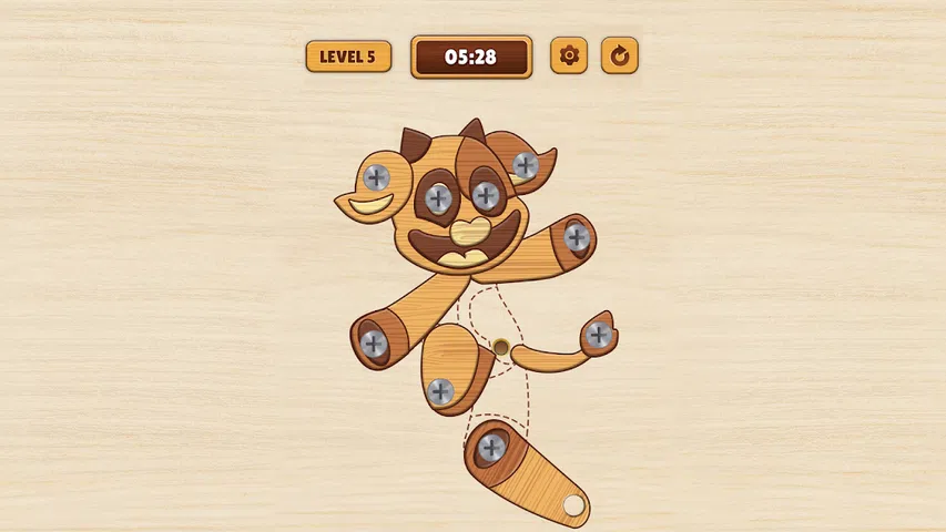 Wooden Amusing Puzzle 是一个解决难题和拆解一切的独特世界。 您的目标是在允许的时间内移除所有紧密相连的木条,木条下面隐藏着有趣的动画。 参与从易到难的数百个关卡,引入各种新的障碍和刺激的谜题,以保持持续的思维敏锐度和乐趣。逻辑提示:获取有用的线索来阐明最具挑战性的木制拼图