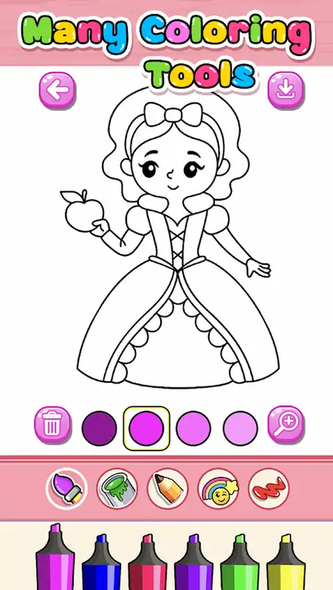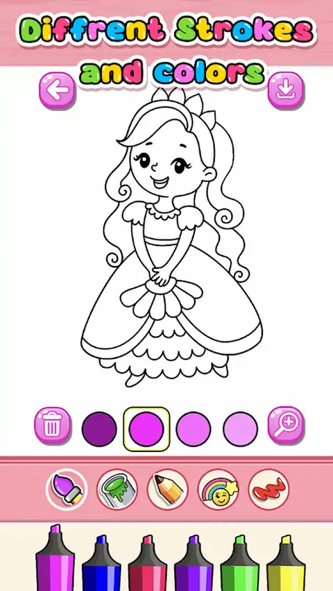 ?嘿,幼儿!你想玩颜色吗?您的孩子喜欢涂色吗?快来和我们一起玩幼儿涂色游戏吧。为公主、城堡、马匹和许多其他酷炫的东西涂色!大量令人惊叹的彩色涂鸦将为孩子们带来无限的涂色乐趣。? ?这本公主绘画和涂色书将帮助他们使用蜡笔、彩色铅笔、记号笔、油漆或其他艺术媒体了解不同的颜色。通过玩这款公主着色和绘画游戏,培养孩子的手眼协调能力和精细运动技能。 使用贴纸让您的照片更酷。我们有公主,闪亮的珠宝,甚至很酷的马车供你使用! ?所以快点,一大堆娱乐性的公主幼儿涂色游戏正在等着你.让我们为它涂色.享受吧