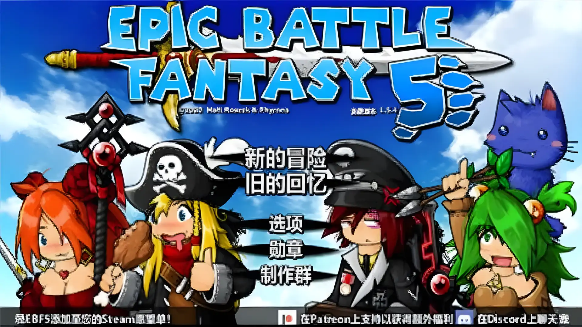 史诗幻想5中文版(Epic Battle Fantasy 5)是冒险RPG《史诗幻想》的系列在2020年的最新作品。游戏延续前作的卡通画面和轻松玩法,玩家依然可以控制弓箭手、战士、法师、神枪手4个角色,探索新的世界和隐藏区域,和越来越强的怪物战斗,并体验一个完整的故事情节。 官方版本支持中文,游戏开始后在标题界面选择 【OPTIONS】,进入后选择【简体中文】即可。 史诗幻想4简要回顾: Matt、Lance和Natalie在击败上古神兽Akron之后慢慢沦为江洋大盗,森林女孩Anna所在村庄的镇村之宝被偷。众人一路追踪下去却发现了人类即将面临存亡的考验,窃贼的真正目的、背后的主使、猫族和人类的纠葛等等一系列谜团均在这次历险中等你揭开。
