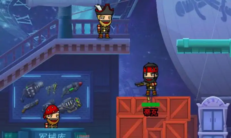 乱斗类射击游戏,你是一艘时间飞船的船长,在时间长河中穿梭,寻找危险的冒险!你的船员非常的忠诚,他们一直跟随着你!现在,你要决定去哪,冒险是你的生命!游戏中你可以管理自己的船员,在时间之中旅行冒险!主角们是一群时空海盗,可以在不同的时空中穿梭,从而解除各种危险。每次进行任务,就是在一个固定场景里乱战,人物很多,而要做的当然就是把敌人消灭掉,反正基本上就是一通乱射就可以了。随着游戏的进行,自然也有各种升级。这类游戏是没有技巧性可言的,玩的就是一个字:爽。提示:1、在基地里可以进行武器和宠物购买,武器购买后战场上的宝箱里就会出现该武器。2、宠物购买了需要装备(SELECTED),每个宠物能力不同。3、找到基地里的衣柜和队友可以改变自己和队友的外形。