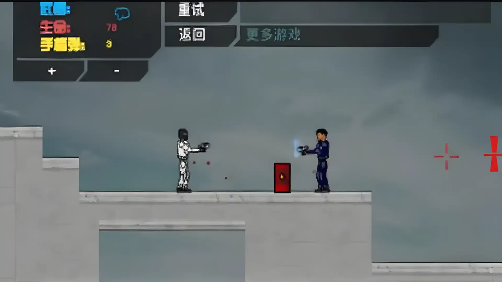超时空战士的中文汉化版本,本游戏由西部苦力怕汉化。超时空战士是一款非常给力的射击过关小游戏,游戏中,你所属的种族星球几乎全被毁灭,你跟另一位战士接受任务,进入时光机器穿越时空回到过去调查详细的原因,但因为定位计算错误而被送到错误的地点,和盟友失散了,现在你的任务就是要寻找失散在邻近星球的盟友,并一起回到原本的星球。游戏一共有16个关卡,你可以购买各式各样的武器来加强火力。(商城之中购买)