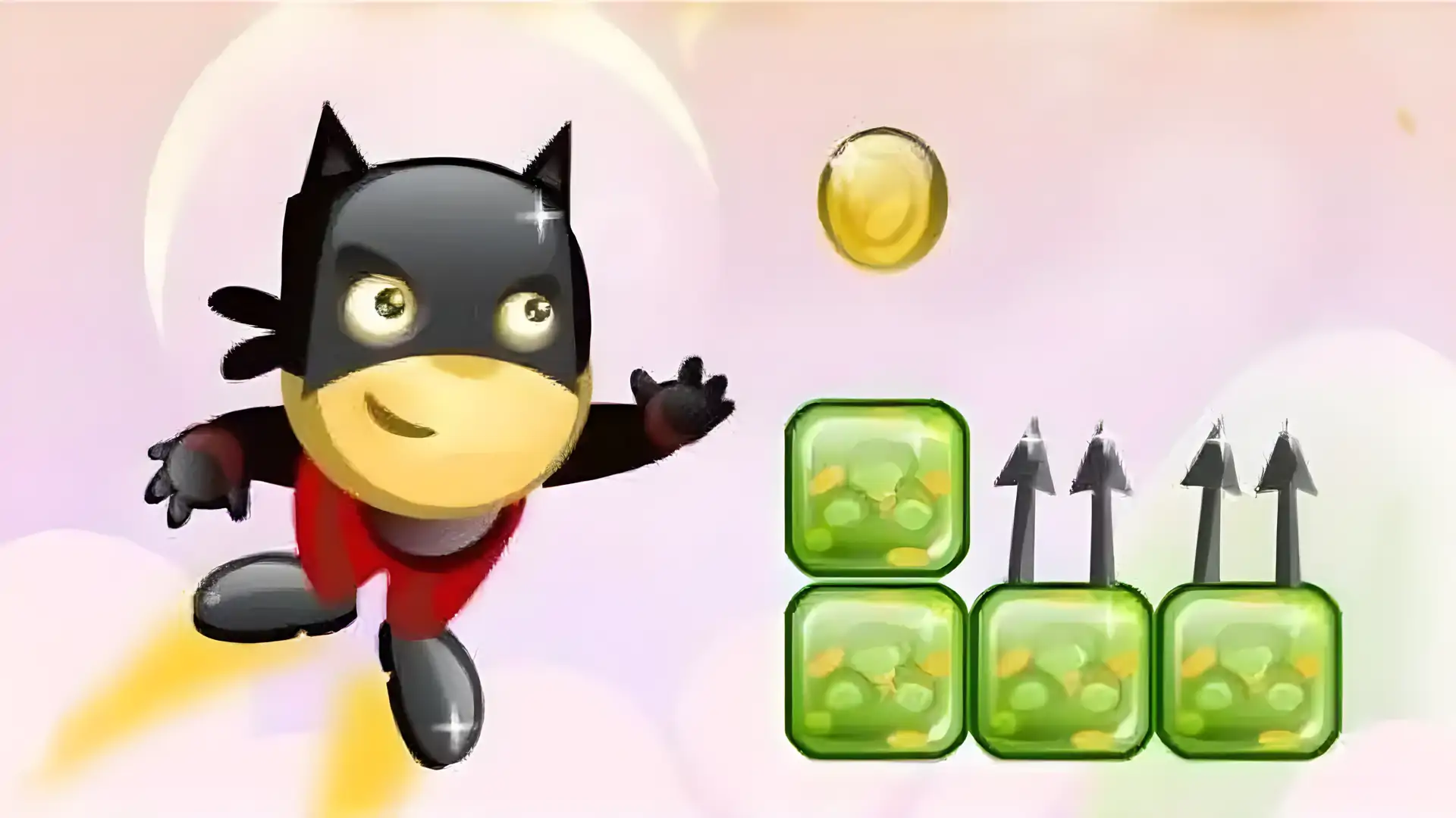 操纵小蝙蝠侠,获得全部金币。 操作方法:方向键=移动跳跃
