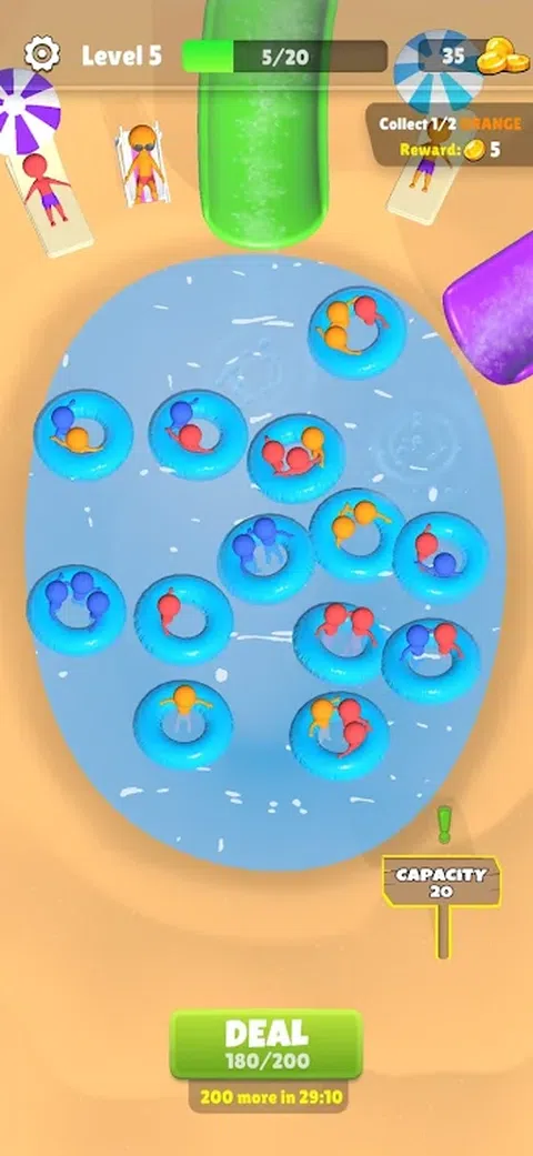 ? 浮动排序 ? 如何玩这个游戏: 1.抓住救生圈?? 2.瞄准并投掷? 3.相同颜色的人将被排序 ? 4.赚钱? 5
