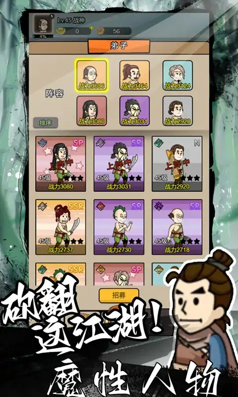 砍翻这江湖是一款非常规的江湖游戏,就是要让你爽! 【挂机推图】畅爽战斗,奖励满满 【修炼功法】超多秘籍,等你解锁 【休闲种田】江湖很累,回归田园 【精准招募】抽卡爆率低?不存在的 【魔性画风】给你一个不一样的江湖!