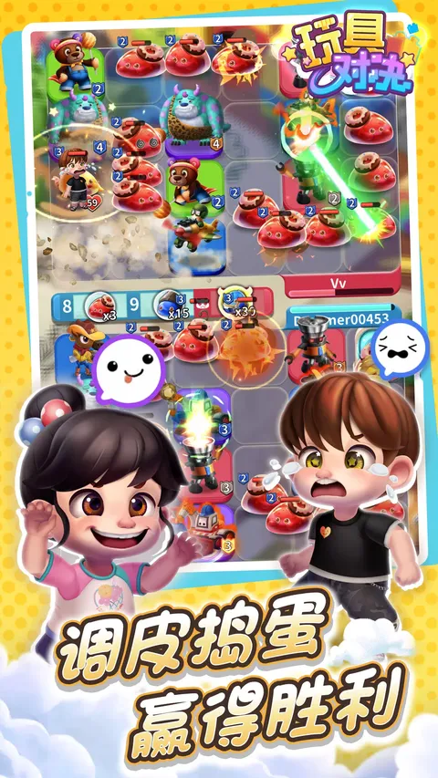 在防守+进攻双向实时对战中,展现您的策略与随机应变能力,与全球玩家一同对战,赢取丰厚奖励并荣登全球竞技巅峰! 独创捣蛋玩法,注意对手动向、掌握时机!就能在对战中奇袭对手扭转胜负! ◈灵动策略,捣蛋竞技◈ 天啊!“调皮捣蛋”让我赢了每场比赛! 每场战斗皆会遭遇不同全球玩家,除了抵御强大怪物之余,更要善用资源派出捣蛋部队突袭对手。兵不厌诈!变化无穷让您热血沸腾,时时考验您的策略布局及临场反应,绝对让您欲罢不能! ◈随时随地,轻松享受◈ 陪另一半逛街的时候终于有事做了! 一分钟上手!五分钟一局!让您随时随地畅快感受实时竞技,躺着玩、坐着玩、趴着玩,怎么样都好玩! ◈童年玩具,回忆相随◈ 我们将童年玩具赋予了灵魂,守护心中那一块净土。 洗澡小鸭、八音盒、挖土机.这些充满回忆的童年玩具,将陪伴您抵御外敌、守护家园!培养玩具还能解锁新技能,快来组建您专属的攻防阵容吧! ◈公平竞赛,策略至上◈ 这世界没有绝对的公平,但是我们有。 根据公平竞赛系统判定,将会匹配旗鼓相当的对手,不用担心满级大佬在新手村屠村了! ◈全球争霸,梦境赛季 ◈ 总有一个地方能让全世界崇拜我。 迎战全球顶尖高手!赢得荣耀并解锁新的梦境战场、卡牌、表情包、角色装扮等各式各样的奖励吧! ◈公会互助,携手共进◈ 大腿人人爱,抱紧处理!P.S.我要抱十个! 与公会伙伴共同合作,互相拾遗补缺、交换玩具,还能透过与公会伙伴们一同讨论构建牌组策略,组建最强矛与盾来迎战全球高手,携手进阶共享公会荣耀