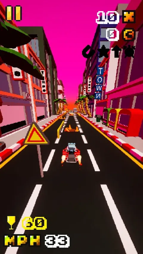 Turbo Town Thrash 是一款无尽的奔跑游戏,您可以在其中控制您的悬停卡丁车在繁忙的城市街道上尽可能长时间地行驶。击败您的高分并收集硬币以解锁所有皮肤。希望您喜欢我的快节奏、动感十足、休闲的街机手机游戏