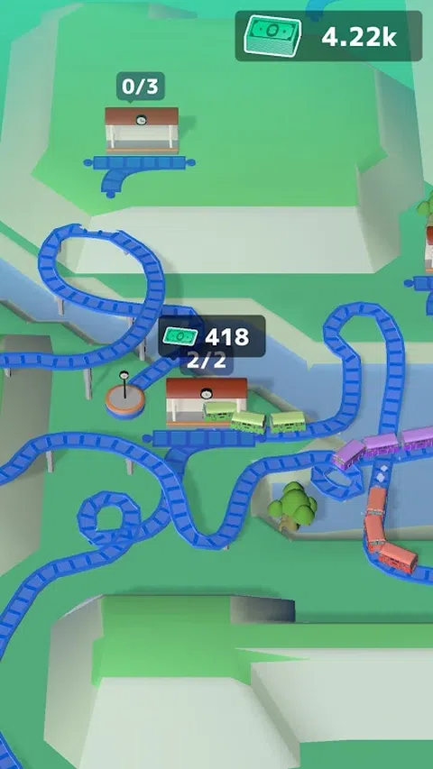 滑动屏幕自由铺设火车轨道。火车将出现在您铺设的轨道上,并在连接的车站之间行驶,从而赚钱。使用您的收入购买更快的火车或增加火车车厢的数量,以更有效地赚钱! 现在,让我们铺设轨道并运行火车!用你的火车赚钱并扩展世界