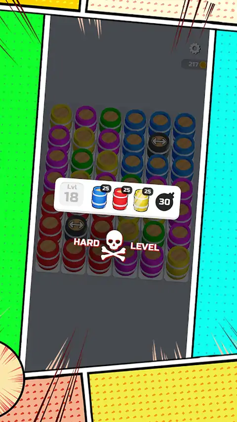 炸弹僵局游戏带您探索充满活力的桶和炸弹世界!滑动以匹配彩色桶,完成目标并扫清道路。当你应对冰块和石桶的障碍时,请仔细规划你的策略。该游戏结合了策略和动作,适合所有玩家。享受丰富多彩的图形和引人入胜的游戏玩法,无论您是休闲游戏玩家还是益智爱好者,炸弹僵局游戏都将给您带来无尽的乐趣!准备好掌握爆破桶的艺术,并在这次冒险中释放您的激情
