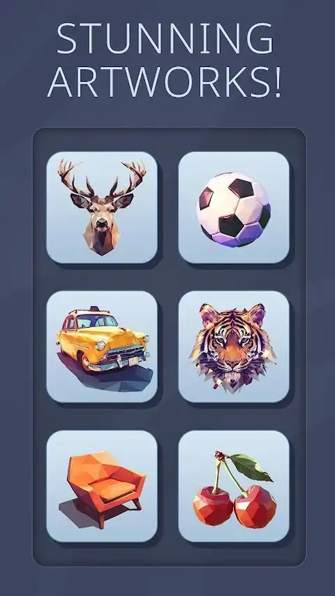 欢迎来到 Poly Zen: Puzzle & Art,这是结合了创造力和挑战的终极 3D 拼图体验!沉浸在低多边形艺术的迷人世界中,用碎片拼凑出令人惊叹的 3D 模型。这款引人入胜且令人上瘾的益智游戏将让您娱乐数小时,测试您的空间意识和解决问题的能力。 Poly Zen: Puzzle & Art 为您带来独特的解谜体验。旋转、扭曲和旋转碎片,直到您展示制作精美的 3D 低多边形艺术。每个谜题都是等待被发现的艺术品
