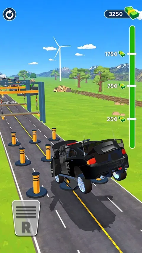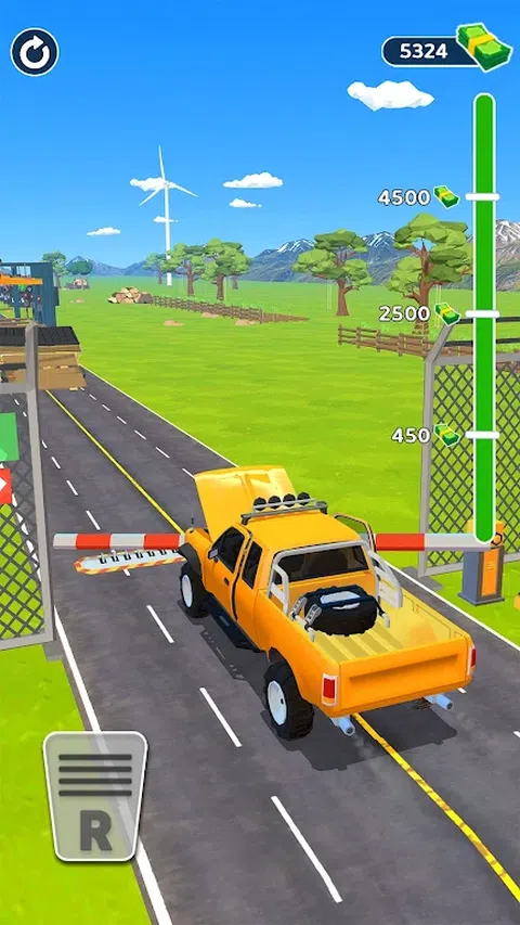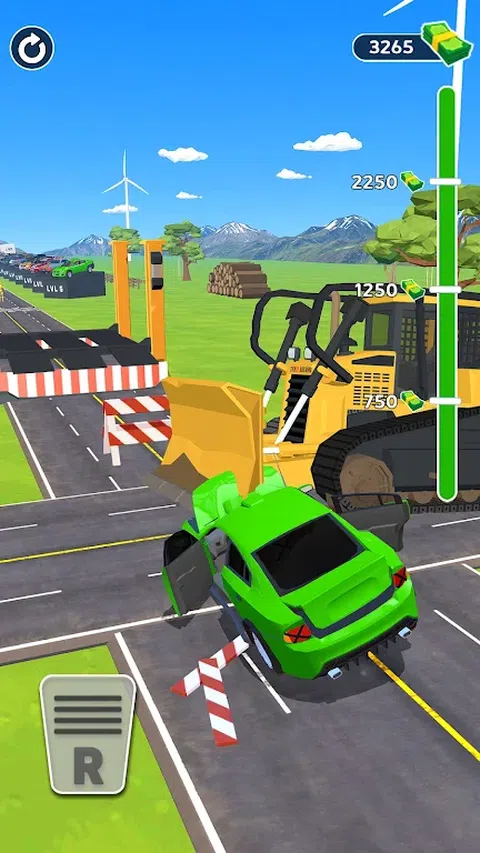 在蹦床上跳跃,躲避巨大的板条箱,穿越坑洼和道路颠簸!尽一切努力防止汽车失事!这是一个艰难的挑战!躲避障碍物,将车开到终点