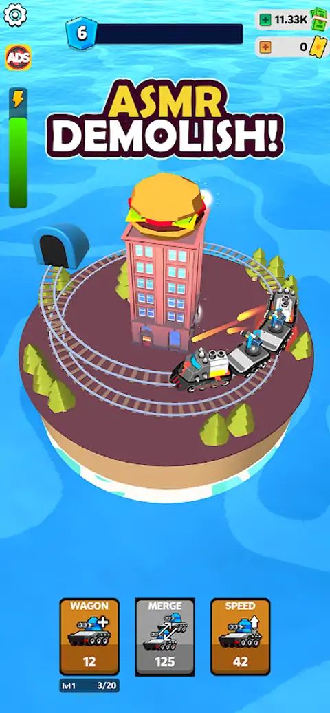 欢迎来到火车拆解者! 在火车拆解者中体验破坏的终极快感,这是一款令人上瘾的游戏,您可以在其中合并强大的武器并摧毁建筑物。加入行动,测试你的战略技能,升级你的武器库,观看混乱展开! 主要特点: ? 合成和升级:点击合成按钮,自动合成最低级别的货车,创造更强大的武器。看着升级后的武器库对建筑物造成严重破坏! ? 史诗般的破坏:享受看到建筑物在合并武器的威力下崩溃的满足感。合并的越多,你就会变得越强! ? 惊人的视觉效果:让自己沉浸在令人惊叹的图形和爆炸效果中,让每次拆除都栩栩如生。 ? 赚取奖励:摧毁建筑物以获得宝贵的奖励和卡片。使用它们来增强您的武器并在游戏中取得进一步进展。 ? 易上手,难精通:简单的点击控制使上手变得容易,但掌握游戏需要策略和技巧。 ? 全球竞争:加入来自世界各地的玩家,攀登排行榜。炫耀你的拆解技巧,成为终极冠军! ? 定期更新:敬请关注令人兴奋的新功能、关卡和活动,让游戏保持新鲜感和吸引力。 你准备好摧毁你的胜利之路了吗?立即下载火车拆解者,体验有史以来最令人满意的破坏游戏! 立即下载,开始你的拆解之旅