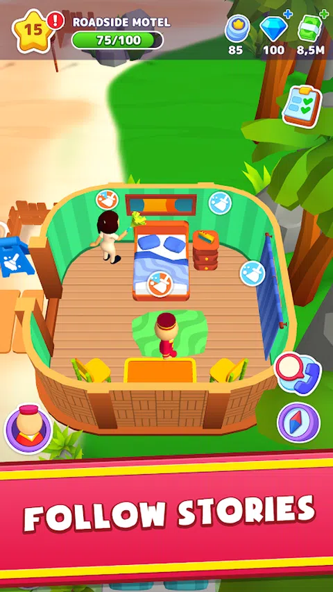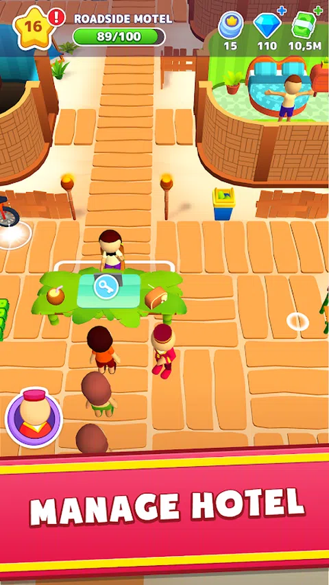 ?热带酒店大亨? 有没有想过拥有一个海滨度假村?在这个时间管理游戏中从头开始建造您的梦想度假胜地。你的目标?创建一个度假村帝国,热带酒店的黄金标准。炫耀您的岛屿酒店管理,对您的财产、团队和基础设施进行明智的投资,并在这个酒店经理模拟器中努力成为度假村大亨。 ? 岛屿款待? 作为一个谦虚的度假村服务员开始你的旅程。从迎接客人、打扫卫生、为客户提供所需物品到管理整个酒店,都可以完成任务。收集金钱和小费,改造房间,扩大领土,雇用清洁工,控制员,仓库管理员。度假村经理的生活很忙碌,没有时间在棕榈树下休息。 ? 增强您的天堂? 建造和设计新的平房,扩大财产并赚取星星来升级酒店的等级!管理员工,雇用新员工,并监督职责的履行情况。酒店业务的成功取决于您! ? 保持移动? 这个行业的成功取决于风速。提高您和员工的效率,及时满足客人的度假需求,提高满意度和利润。 ? 设计你的梦想 升级和个性化您的度假村,将每位客人的住宿打造成难忘的热带度假胜地。从各种热带风格的客房装饰选项中进行选择,为难忘的住宿做好准备。在这个游戏中,你不仅仅是一个经理,还是一片天堂的创造者! ? 岛屿等待着您? 正在寻找一款将时间管理与热带风情融为一体的游戏?进入豪华度假村管理的世界,在这个迷人的模拟器中发展您的酒店业务。在这里,你将磨练自己作为大亨、战略家和设计师的技能。有趣的游戏,成为酒店业的百万富翁! 下载《我的小小旅馆》,开始打造您的酒店帝国