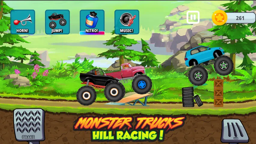 欢迎来到专为儿童制作的怪物卡车山赛车游戏!启动超过 64 辆怪物卡车的引擎,并且还会添加新卡车,由 38 名王牌车手之一进行控制,并在 9 个不同世界的 54 条惊心动魄的山地赛道之一上比赛!儿童版《怪物卡车山赛车游戏》将赛车游戏提升到了一个全新的水平。如果您的孩子喜欢赛车游戏、汽车、卡车、工程车,甚至是怪物卡车,那么这款游戏就非常适合他们! 该游戏是为幼儿、幼儿园儿童和学龄前儿童设计的,通过非常简单的加速和刹车控制,他们可以驾驶怪物卡车在赛道上爬上爬下! 为了让孩子们更容易玩游戏,卡车永不翻车,确保您的孩子总能到达终点线,而 AI 对手卡车在领先时会减速,让您的孩子有最大的机会赢得每场比赛! 有趣的彩色按钮可用于跳跃、鸣喇叭、更改音乐曲目或启动硝基以加速超越其他车辆。解锁新轮子来装扮你的怪物卡车。 使用玩具怪物机器沿着赛道碾压汽车,每个关卡结束时都会放烟花和爆破气球,为玩耍的孩子带来更多刺激。 游戏还以迷你游戏的形式提供有趣和教育性的游戏,包括 * 拼图 * 记忆卡 * 气球爆破 * 抓娃娃机 特点: * 大量怪物卡车可供选择,并且还会添加更多 * 54 个级别可供比赛、攀爬和获胜