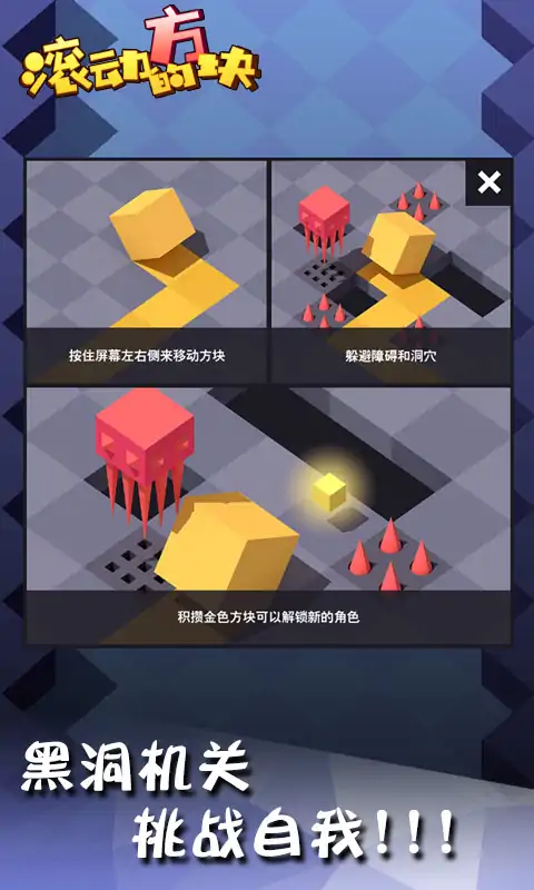 《滚动的方块》是一款极简美术表现风格的创意类游戏作品,考验左右手的协调性,神经与反应的挑战。游戏中设计有很多动态的机关障碍陷阱,具有一定的冒险挑战性。滚动的方块一款特色差异化的游戏,这个夏季等你来一起来畅玩。