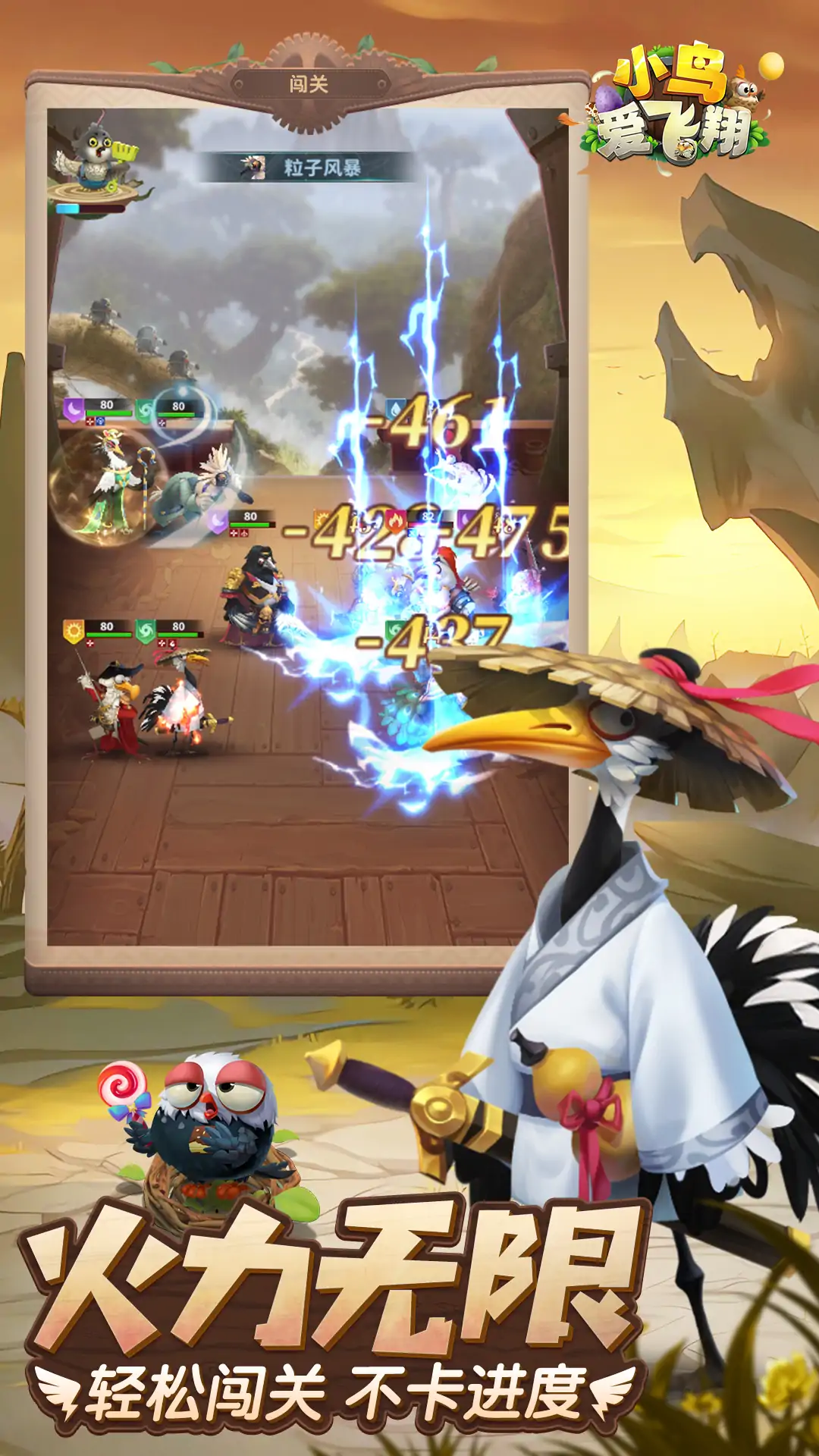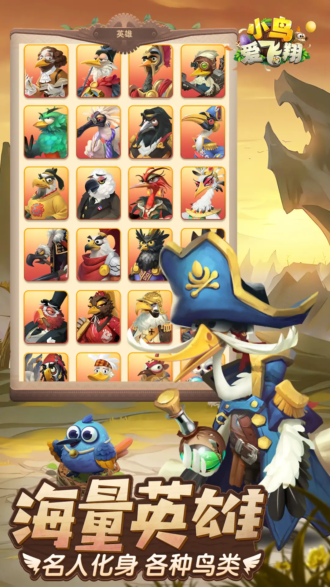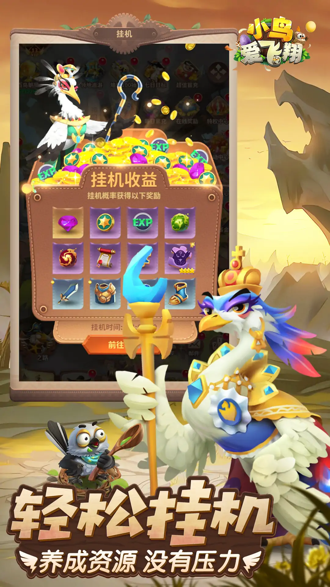 《小鸟爱飞翔》是一款以虚构世界各地英雄为背景的冒险题材放置卡牌类游戏。 在游戏中,玩家可以收集自己喜欢的英雄,对其进行升级培养,提升自己的战斗力。还可以在征战中攻击野怪、收集资源;可以与其他玩家对战;还可以加入公会,与公会其他成员共同战斗,争夺第一公会的宝座,带领你的公会走向胜利!更有神奇的宝藏和遗迹,等待玩家发掘。 游戏有超多关卡,难度由低到高。并且有通天塔等挑战型玩法,同样的由易至难,享受战斗的乐趣。 在探索的过程中,需要通过培养各种英雄,提高综合战斗力来击败成长之路的怪物,才能获得更好的收益以及奖励。 通过游戏可以培养玩家的探索求知能力、增加玩家的观察力、鼓励玩家敢于挑战,使玩家无形之中建立起勇于面对各种难关,对于任何事都有一种自强不息的心态。