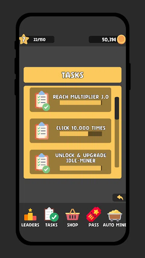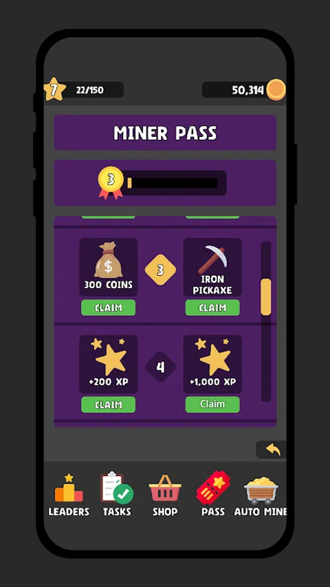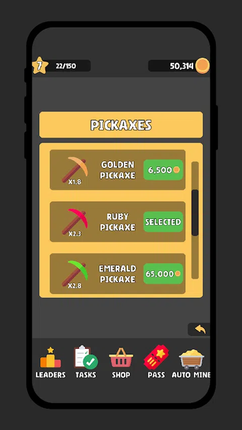潜入 Miner Clicker 2,每一次点击都会推动您获得难以想象的财富!探索我们的游戏内商店,解锁强大的锄镐以加速挖掘并发现隐藏的矿石。使用来之不易的硬币购买助推器,每次点击都会增强您的采矿体验。 与闲置矿工一起增强您的旅程,即使离线也可以收集硬币。完成引人入胜的任务以获得额外奖励,并通过在关卡和点击中超越其他玩家来提升全球排名。密切关注我们的商店,获取独家优惠—每一次点击都将成为您通向辉煌采矿之路的关键!让我们挖掘您的财富之路