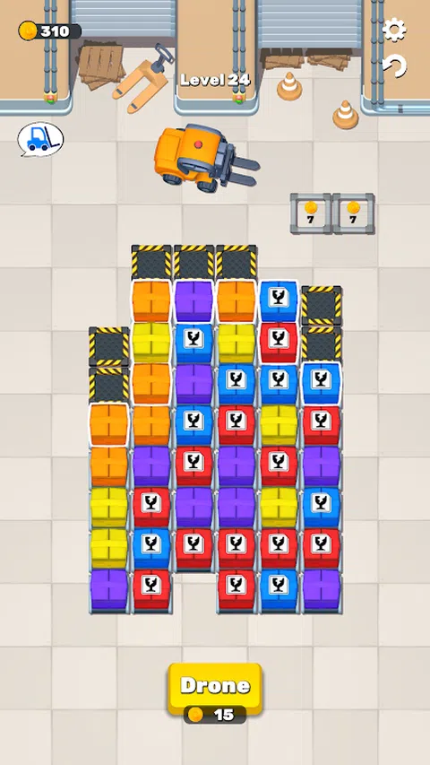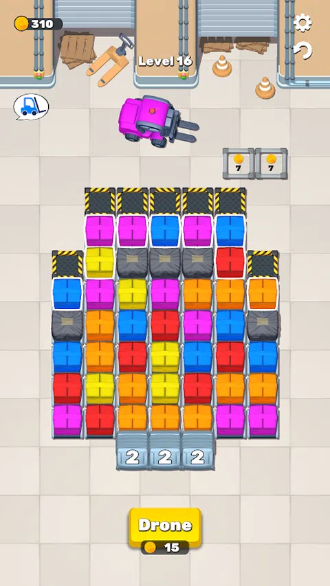快来玩 Package Jam 这款令人兴奋的新手机游戏,进入充满活力的拼图世界!你的任务是匹配彩色盒子并将它们引导到叉车上,但首先,它们必须排列在托盘上,托盘的位置随级别而变化。当您浏览日益复杂的关卡时,挑战您的战略思维,每个关卡都提供独特的托盘配置。凭借直观的控件、令人惊叹的图形和引人入胜的游戏玩法,Package Jam 承诺数小时的乐趣和脑力锻炼。立即下载,看看您是否有能力掌握盒子匹配和托盘排列的艺术