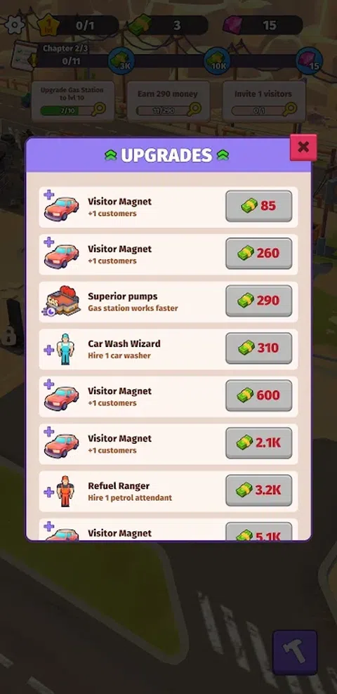 在沙漠中创建您的业务。帮助汽车和客户。您的加油站是严酷世界中的绿洲。将它从一个枯燥、破败的地方改造成一个成功的企业