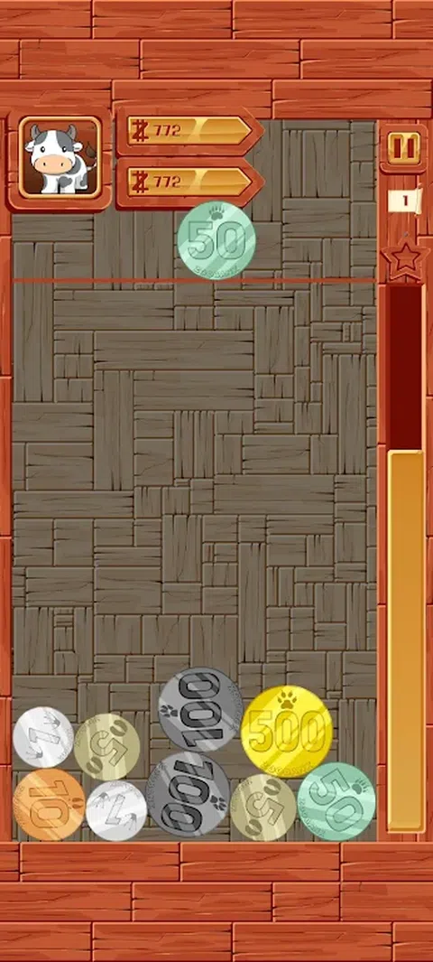 现在不是水果,而是硬币。 尝试通过将硬币放在一起来移除硬币,这样存钱罐就不会溢出。 当您收集五个 1 单位硬币时,它们将变成 5 单位硬币。 当您收集两个 5 单位硬币时,它们将变成 10 单位硬币。 继续将硬币增加到 500 单位硬币,然后将其移除