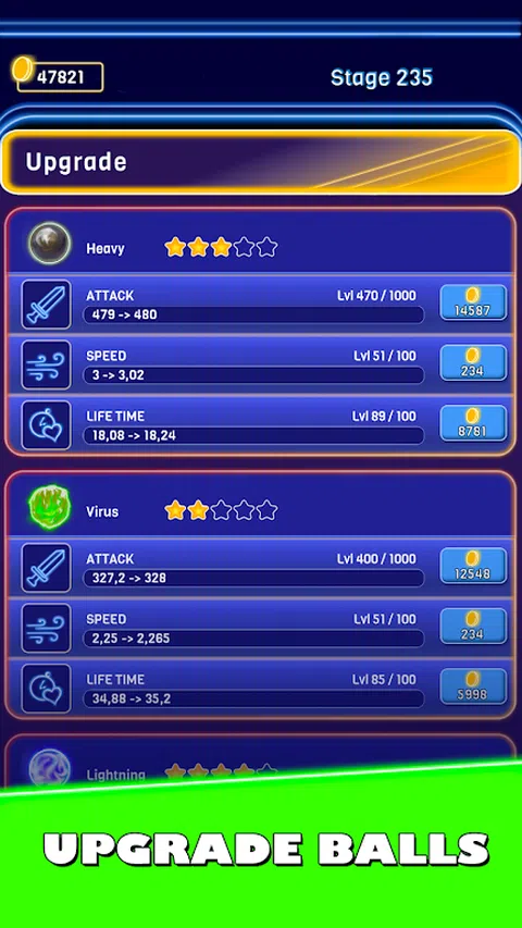 进入《Idle Balls vs Bricks》迷人的霓虹灯世界,在这款终极闲置游戏中,您的战略技能与无尽的放松融为一体。沉浸在视觉震撼的宇宙中,伴随着舒缓的背景音乐,看着你的小球突破一系列彩色砖块。 在《Idle Balls vs. Bricks》中,你的任务是解锁和升级各种独特的球,每个球都有特殊的能力和道具。随着您的进步,收集强大的设备以永久提高球的力量和效率,确保它们以越来越高的威力粉碎方块。 特点: - 令人上瘾的游戏玩法:无需持续互动即可享受破坏方块动作的快感。即使您处于离线状态,您的球也会不知疲倦地工作,为您赢得奖励和资源。 - 霓虹灯视觉效果:体验充满活力的霓虹灯美学,流畅的动画和迷人的视觉效果使游戏栩栩如生。 - 轻松的音乐:让舒缓的背景音乐增强您的游戏体验,创造动作与放松的完美融合。 - 升级系统:使用您的收入来升级您的球的速度、力量和效率,以最大限度地发挥其打破障碍的潜力。 - 无尽的挑战:完成无限数量的关卡,每个关卡都有新的挑战和奖励。 立即下载《Idle Balls vs. Bricks》,开始你的旅程,进入霓虹灯照亮的世界,享受无尽的方块破坏乐趣。坐下来,放松,让球完成工作