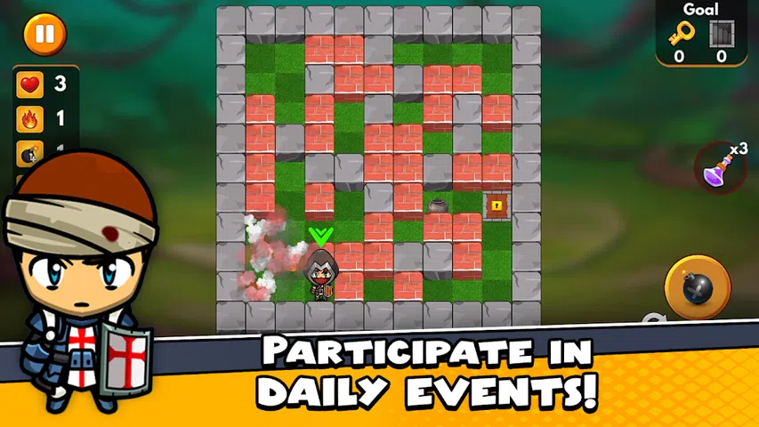 最令人上瘾的炸弹人游戏之一,不间断的炸弹游戏乐趣终于来了。 快跑!出发!加速! 在这个冒险中炸毁你的敌人,与你的朋友一起将炸弹游戏进度提高到一个新的水平。 炸弹人终于可以在您的智能手机上使用,与炸弹人竞技场一起探索更多冒险。 最佳的在线炸弹人游戏现在已准备好用于智能手机和平板电脑,具有高图形质量。您可以在任何地方玩炸弹人游戏。您可以在我们的炸弹人游戏中玩各种模式。 奖励金币 -在炸弹人游戏中获得高达 10,000 个硬币作为欢迎奖金,并通过使用我们的炸弹人 BOOM 收集您的每日硬币奖金来获得更多硬币