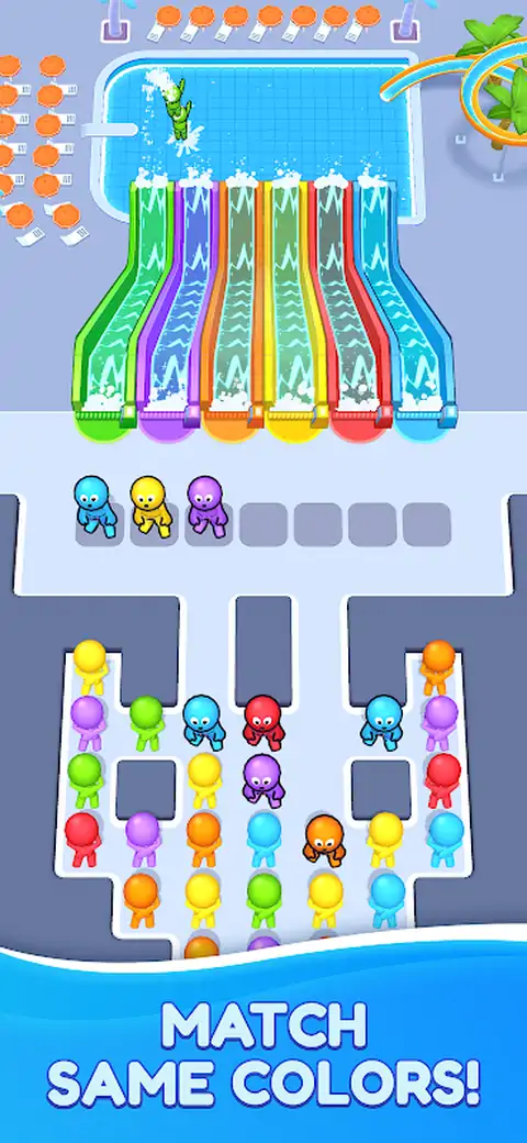 点击并收集 3 个相同颜色的人并滑动它们