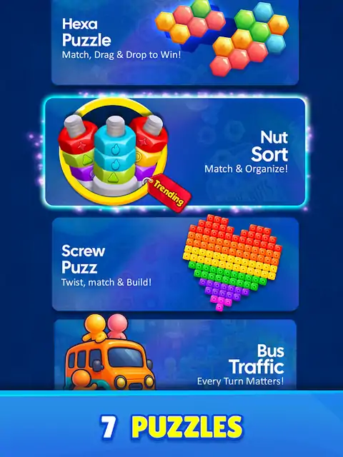 召集所有拼图大师和逻辑爱好者!准备好迎接丰富多彩的挑战,让你的思维陷入困境!坚果和螺栓 3D 螺丝拼图在这里测试您的技能,让您娱乐数小时。 基本要素 - 解决问题! 在这个坚果螺栓游戏中,你会遇到一系列令人眼花缭乱的五颜六色的坚果和螺栓。 你的任务?有策略地将每个螺母逐个堆叠到其匹配的螺栓上。但不要超前