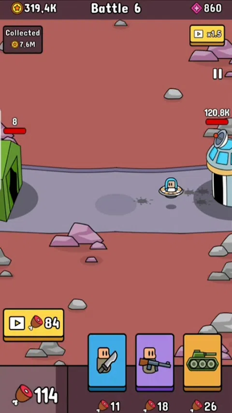 进入一个战士军队的世界,你将负责和控制一支战士军队,你可以选择你想要的任何类型的战士,你的任务是在战斗游戏中击败来自各个时代的所有其他战士军队,成为战士之王! 终极目标非常明确:召唤勇士保卫你的堡垒,运用你明智的策略击败敌人!每次获胜,您都可以升级并增强您的军队实力并解锁新的时代,赢得史诗般的战斗游戏! 空闲战争游戏的粉丝?正在寻找酷炫而史诗般的战斗游戏 顶级勇士军队之间的冲突? 那么勇士军队战斗游戏就是适合您的游戏!这款游戏是放置类游戏、抽奖游戏和策略游戏的完美结合!这不仅仅是一个游戏;这是对你的战略、战斗和征服能力的考验。 与勇士军队战斗游戏一起踏上史诗般的历史之旅!从石器时代的原始战争到现代的高科技战争,这款策略游戏让您成为世界上有史以来最伟大的将军。 游戏特色: ★ 参与顶级勇士军队之间的史诗般的战斗,声称自己是终极勇士! ★ 从石器时代到现代的各种时代,以及剑、弓、枪、忍者等众多战士军队!您的策略没有限制! ★ 无尽的战争游戏,带领你的军队走向胜利! ★ 多种战斗游戏模式,包括地下城模式,需要击败最终的大老板 ★ 多样化的被动和主动技能,在战争军队战斗游戏中为您提供帮助 准备好成为终极将军了吗?立即下载勇士军队战斗游戏,带领你的军队走向胜利。无论您是战略游戏的粉丝,还是只是在寻找一种有趣且引人入胜的方式来打发时间,勇士军队战斗游戏都是您的最佳选择