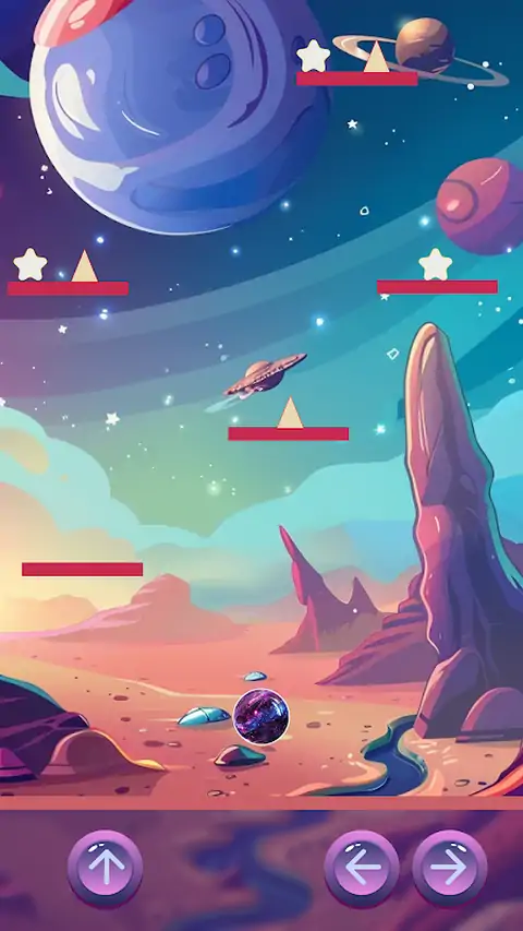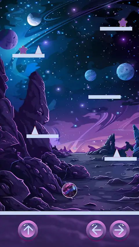 太空球是一款令人兴奋而美丽的游戏,其本质是在太空中控制球,主要目标是收集平台上的星星,但这不是一件容易的事,因为它们被邪恶的三角形守卫,可能会伤害球,游戏将重新开始,跳跃的控制也不一样,因为这是太空,没有重力,因此球可以执行多次跳跃,这使您可以爬到最高的平台,并可能获得最后一颗星星,美丽的音乐和声音,辅以球的振动,帮助您沉浸在太空宇宙中