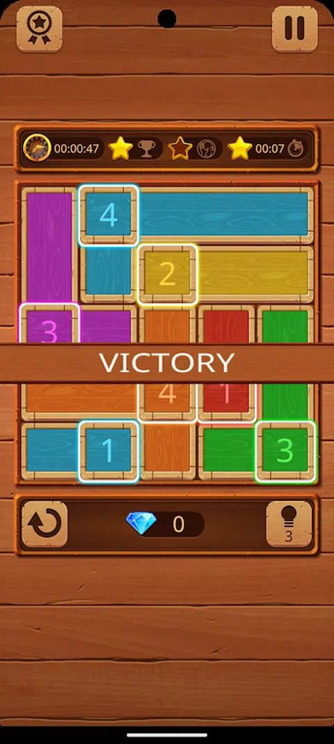 首先,查看网格上的数字。他们每个人都应该填充相同数量的盒子/字段。因此,如果您看到 4,则该图块附近应该有 4 个方框,应使用相同的颜色填充。我告诉过你,它很容易理解.但是,在更高级别上掌握它有点困难,但是第一个级别非常容易学习并享受这个不错的益智游戏
