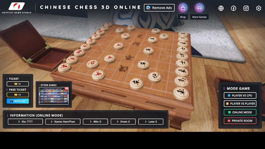 注:象棋中国象棋 3D 在线版是一款在线游戏。需要良好的互联网连接。在开始游戏之前检查您的互联网连接! 象棋 3D 在线版是一款在线 3D 休闲棋盘智力游戏。您可以与陌生人在线玩,也可以与计算机或朋友离线玩。祝你好运,玩得开心! 特点: - 美丽的图形 - 2 种离线模式:玩家对 CPU,玩家对玩家 - 2 在线模式:在线排名赛(PVP 1 对 1),私人房间(与朋友一起玩) - 体积小(无需额外下载) - PVC 和 PVP 在线模式: - 2 名玩家 让我们开始玩吧